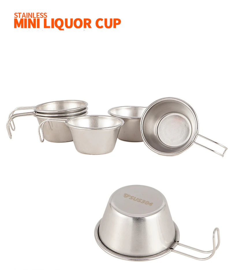 Compact Camping Stainless Steel Cup with Carry Bag 50ML 4PCS Set.