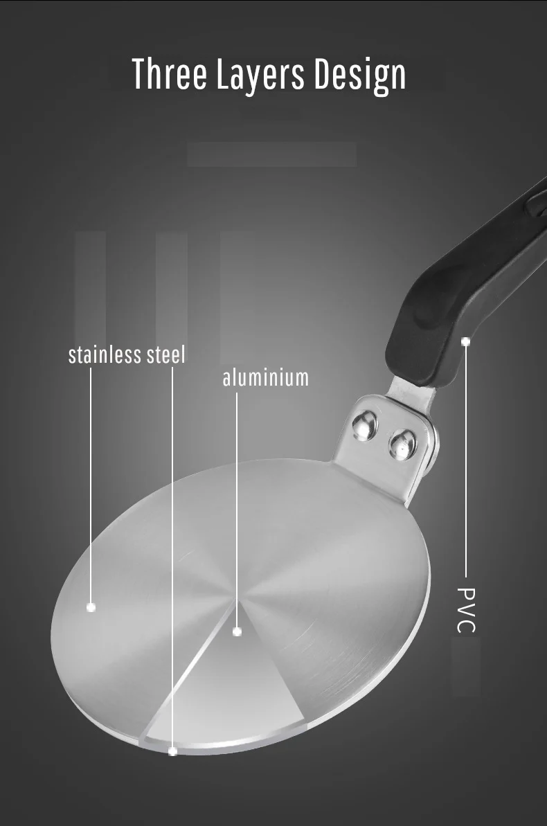 - the plate is designed in three layers. The middle layer is aluminium. Top and bottom layers are stainless steel.